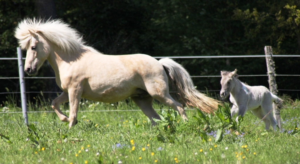 Die Fohlen wachsen und sind gut drauf.